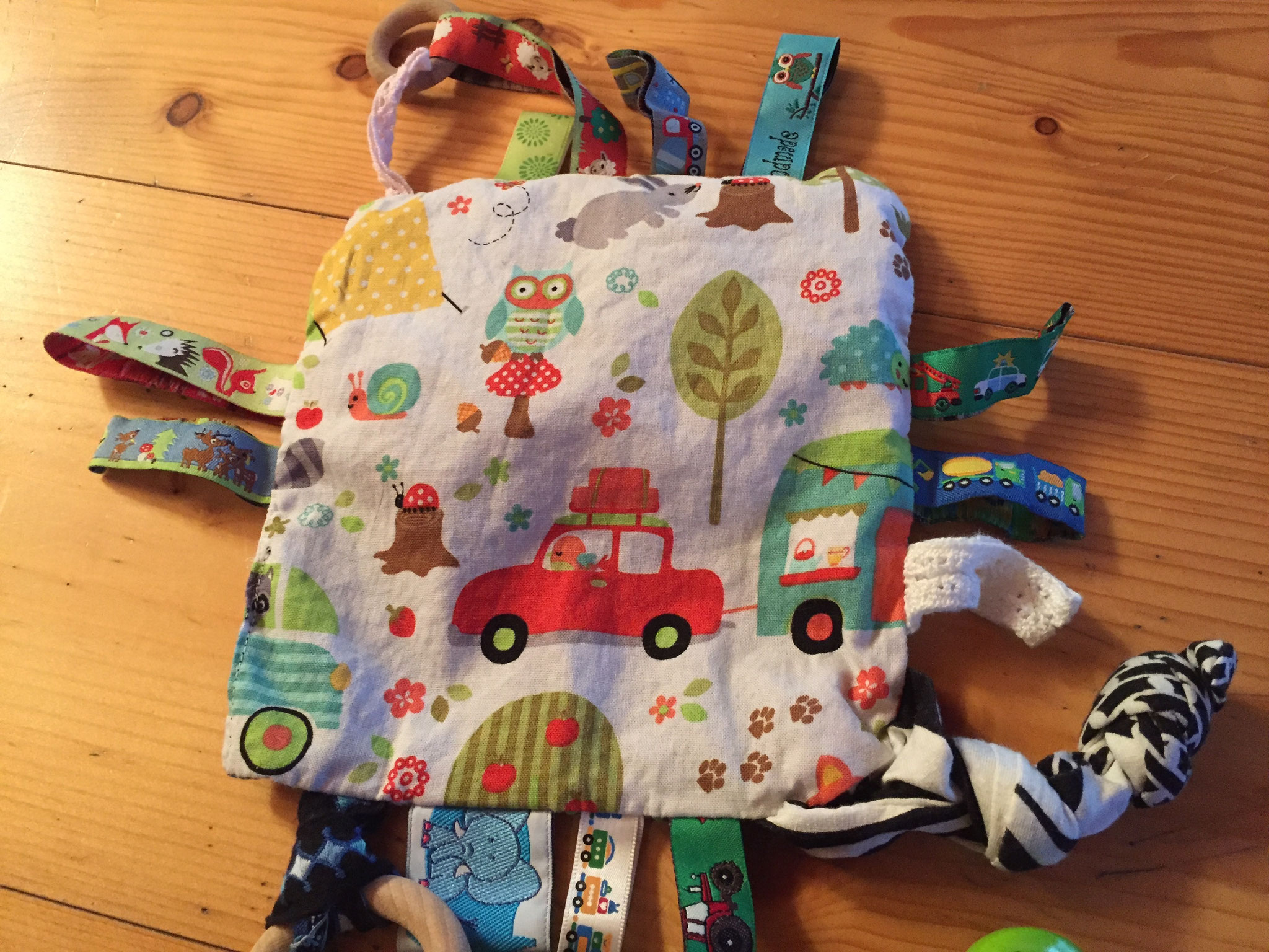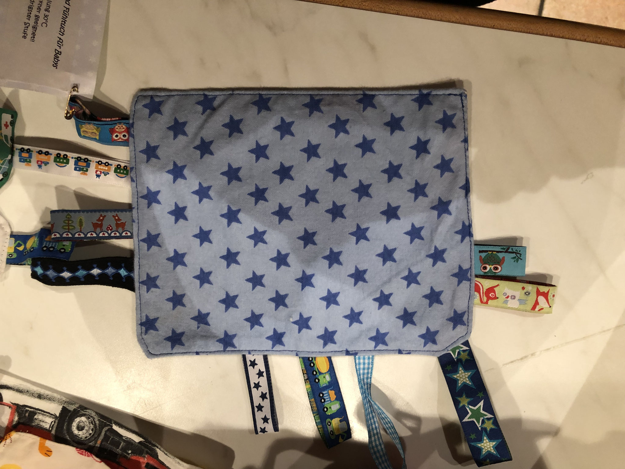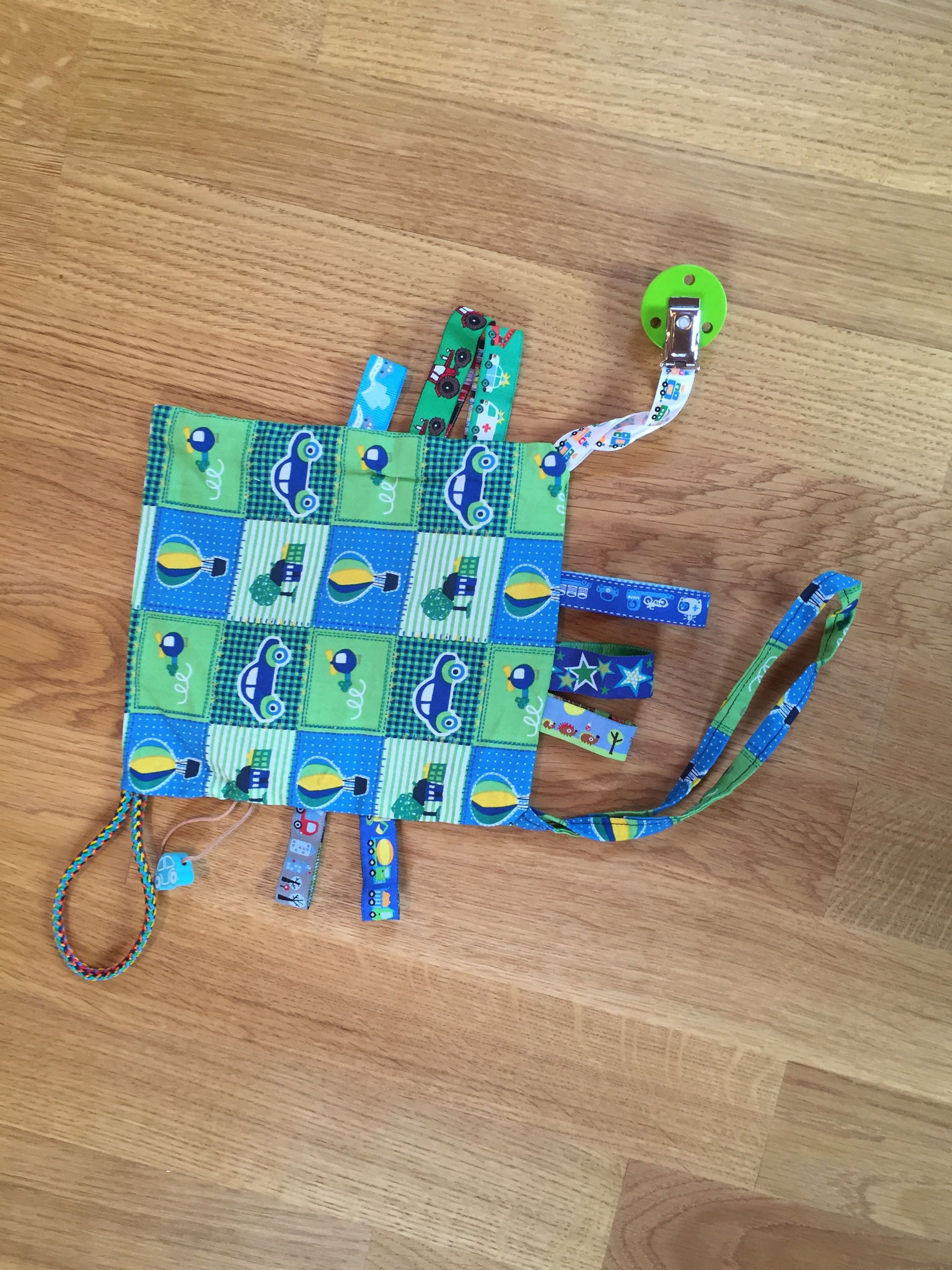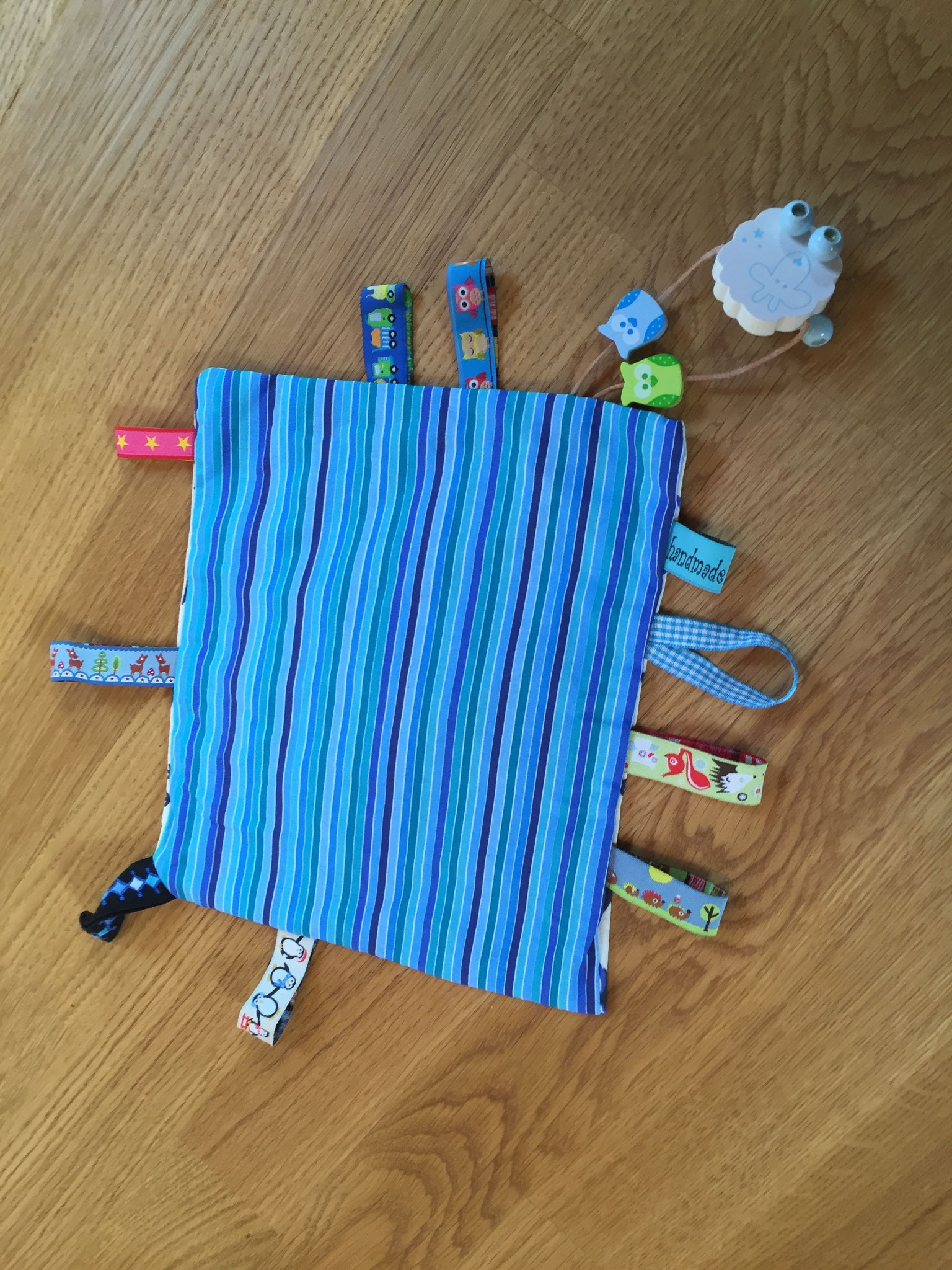 Bei diesen Krabbeldecken gibt es viel zu entdecken. Als Zubehör werden gehäkelte Rasselis, Beiss- und Steckringe, Stofftiere und Spielketten