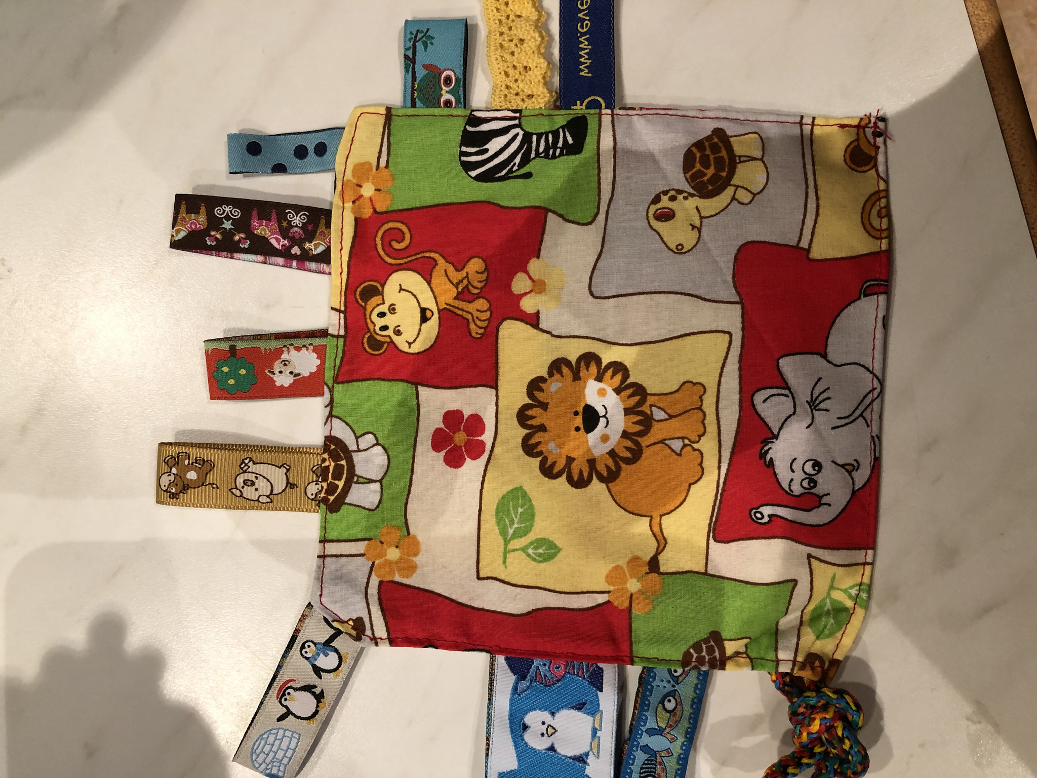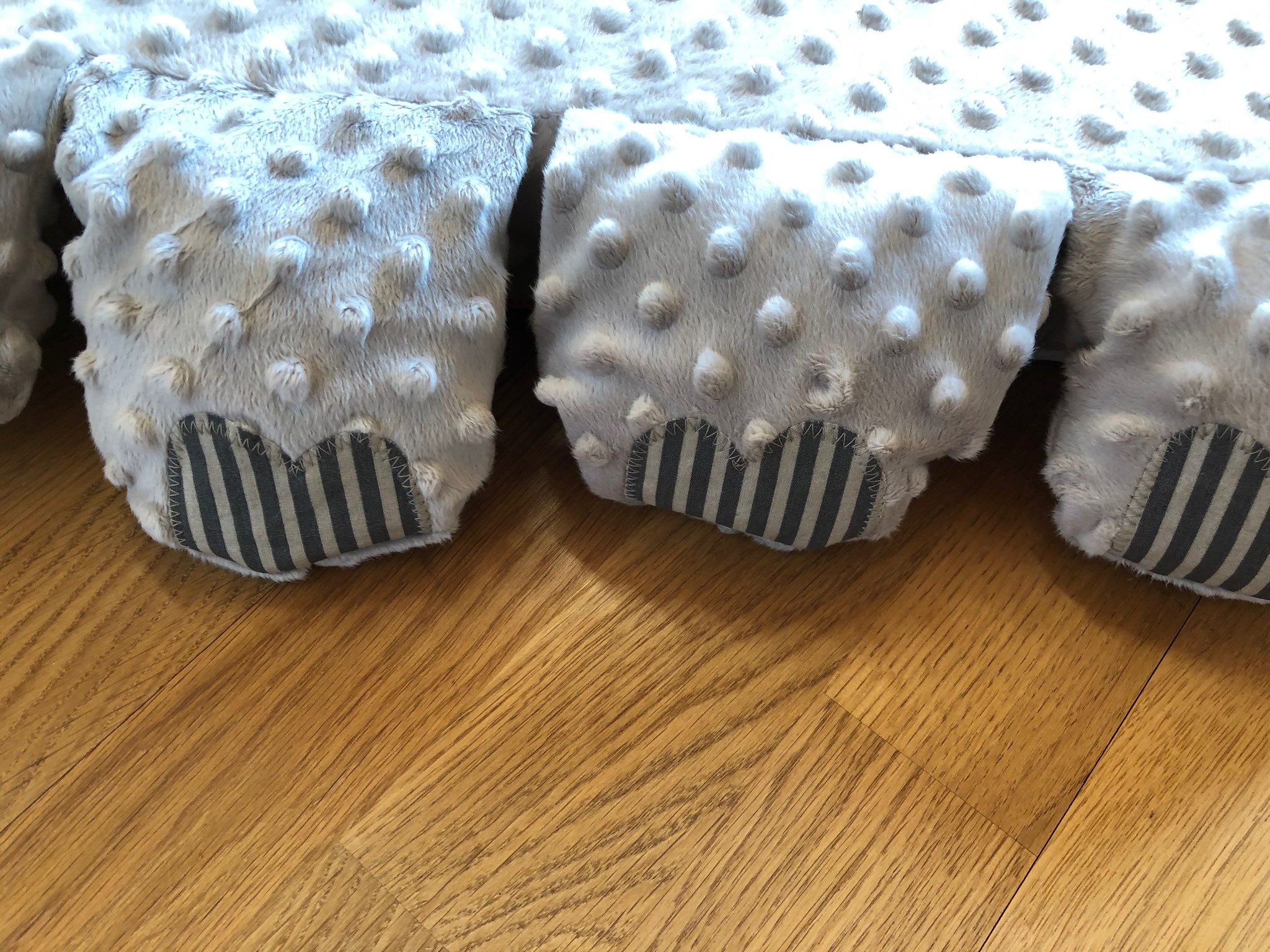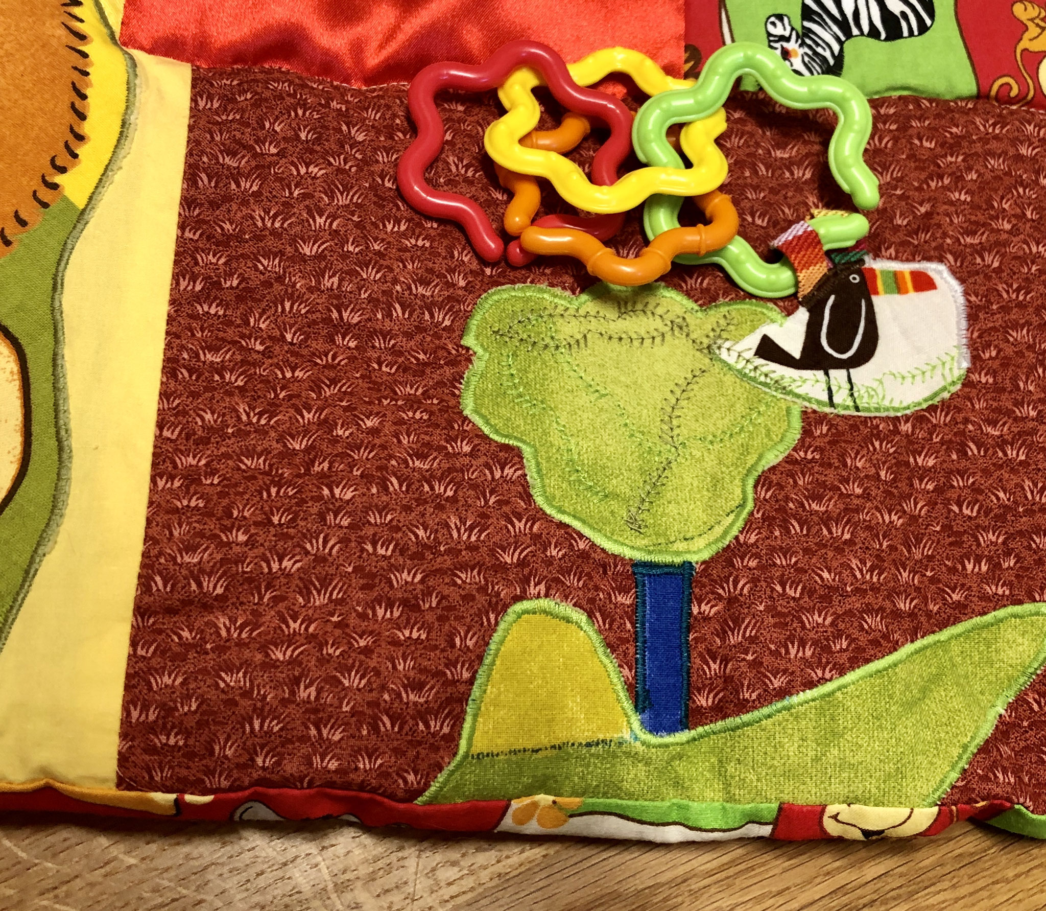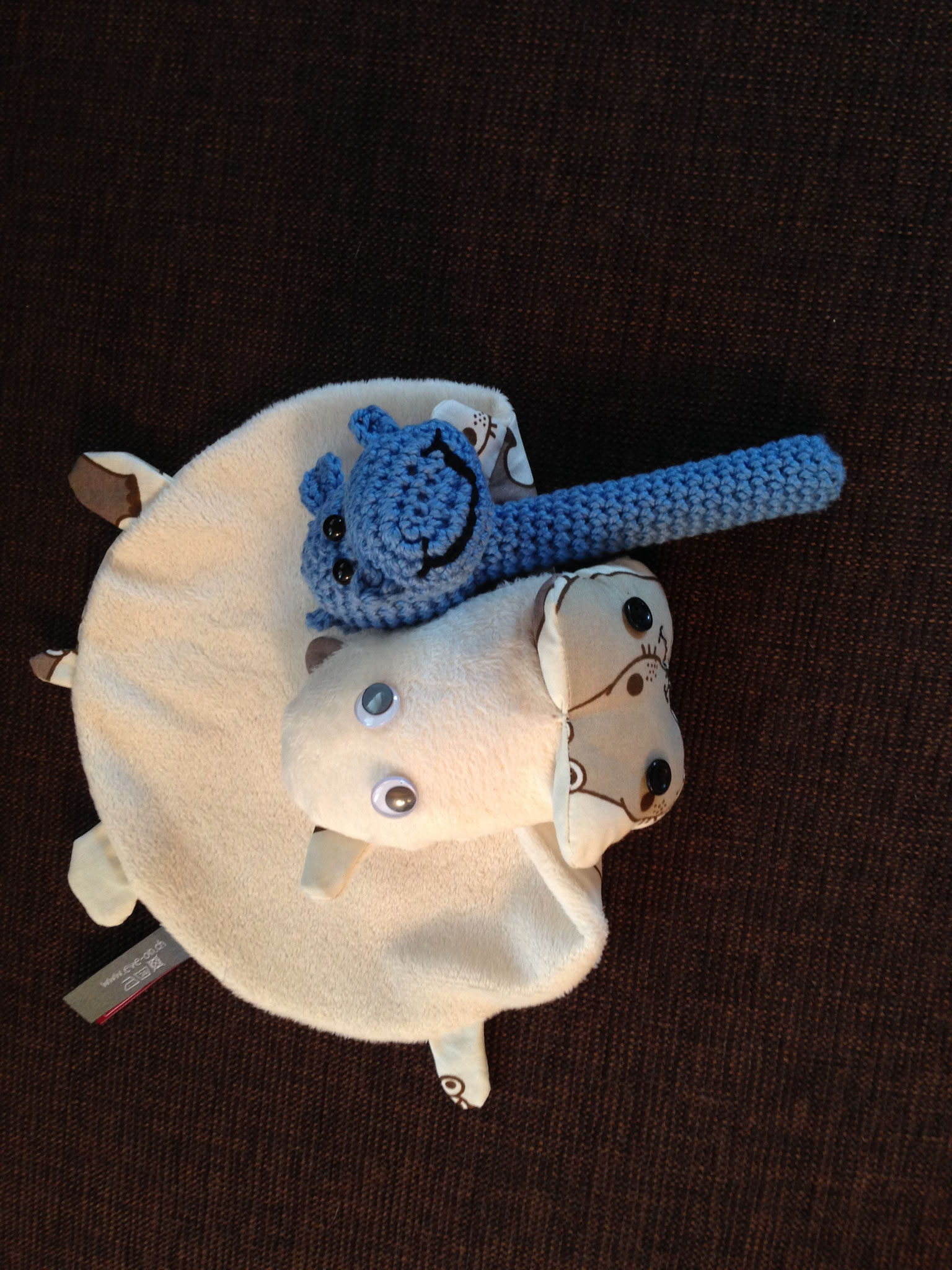 Bei diesen Krabbeldecken gibt es viel zu entdecken. Als Zubehör werden gehäkelte Rasselis, Beiss- und Steckringe, Stofftiere und Spielketten