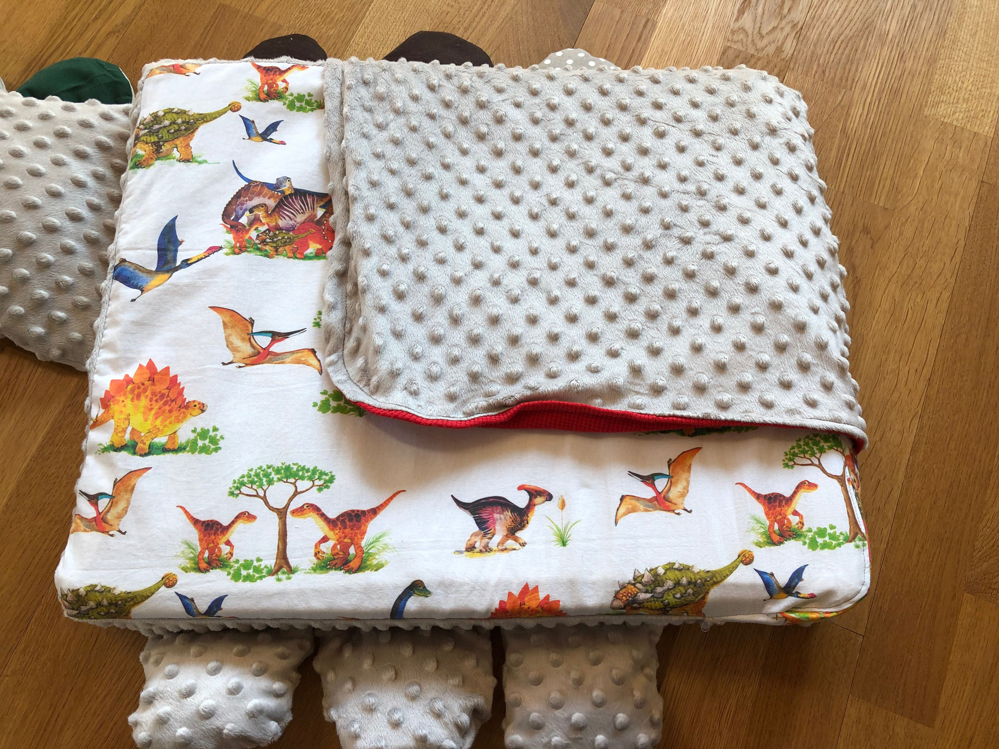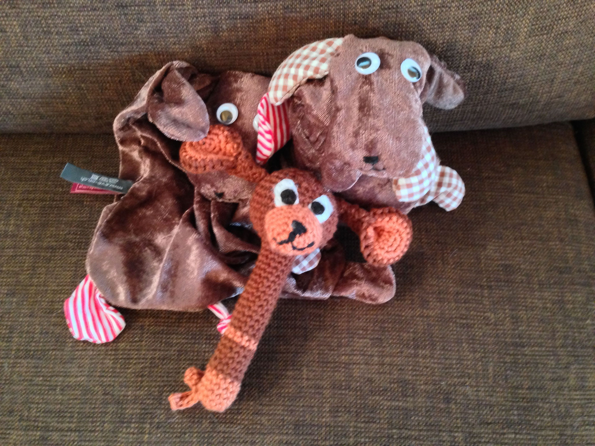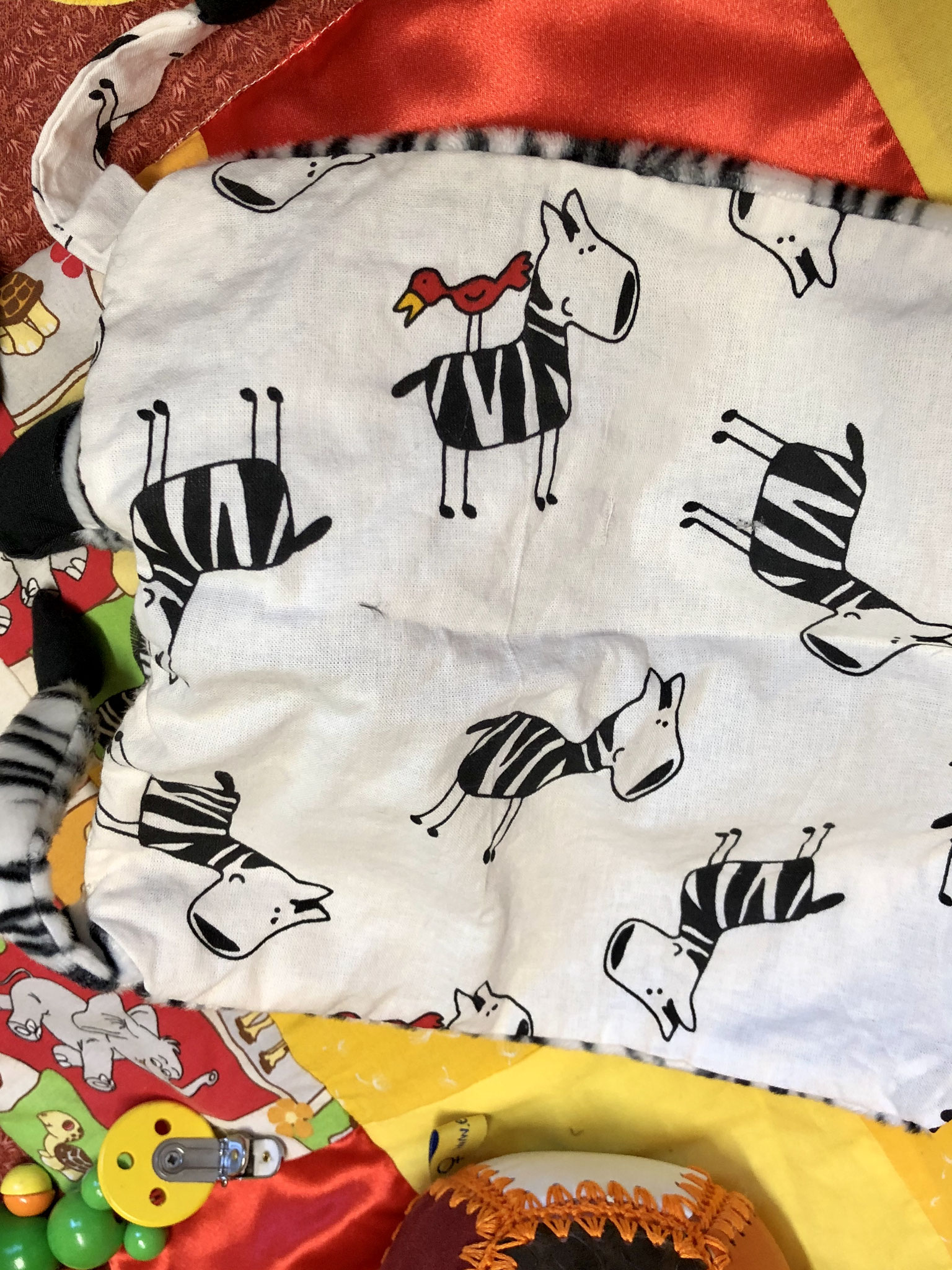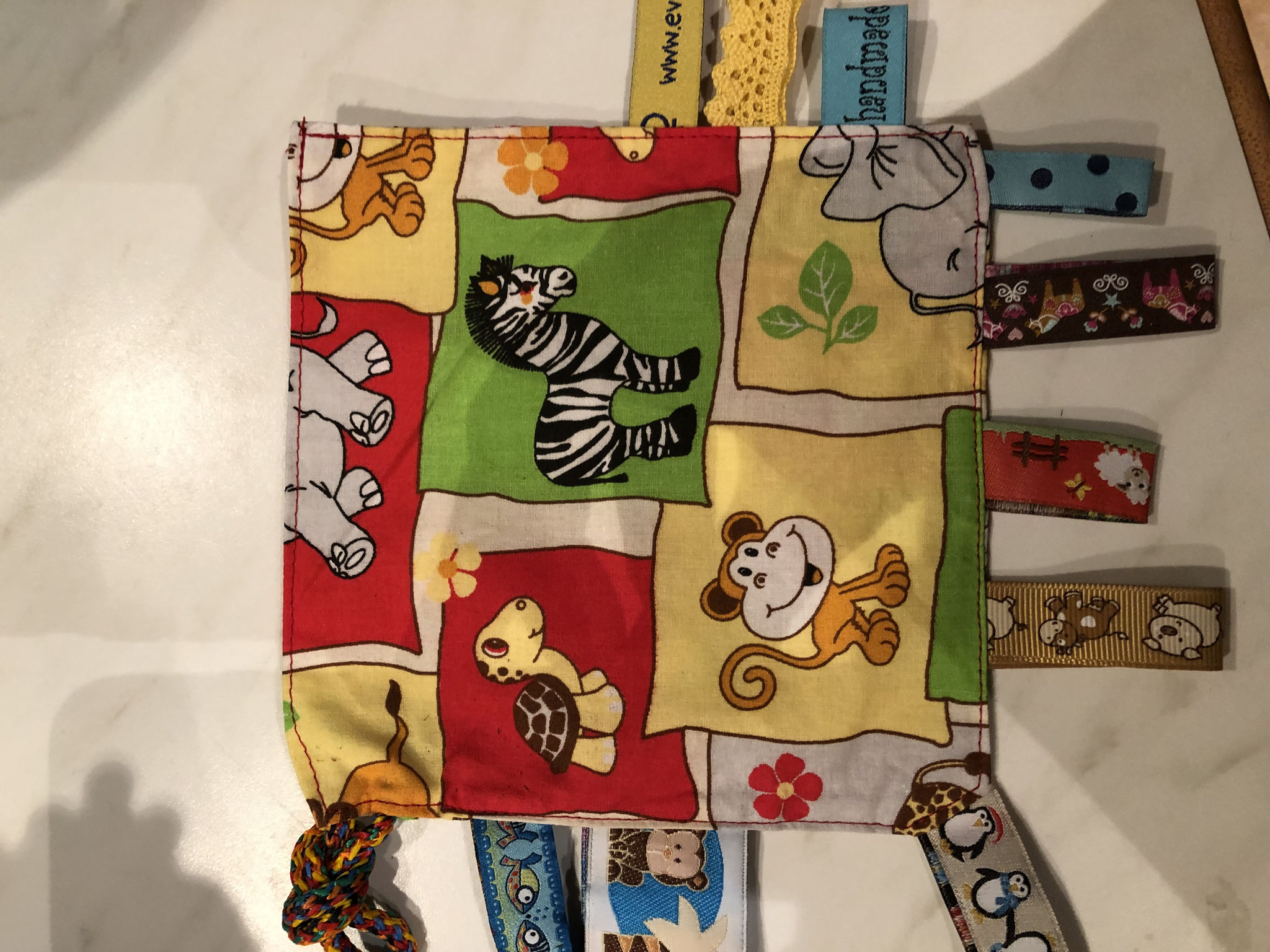Bei diesen Krabbeldecken gibt es viel zu entdecken. Als Zubehör werden gehäkelte Rasselis, Beiss- und Steckringe, Stofftiere und Spielketten