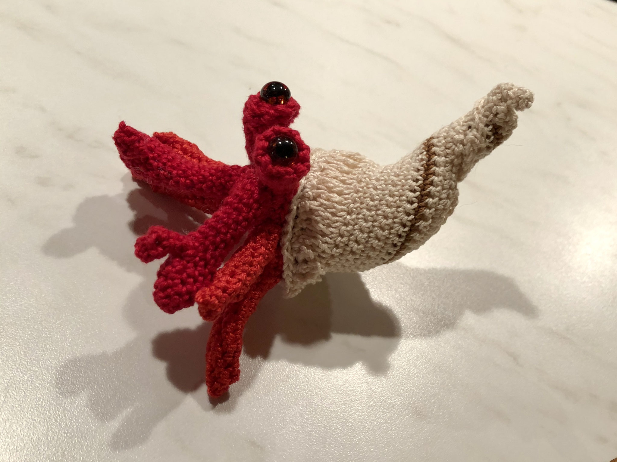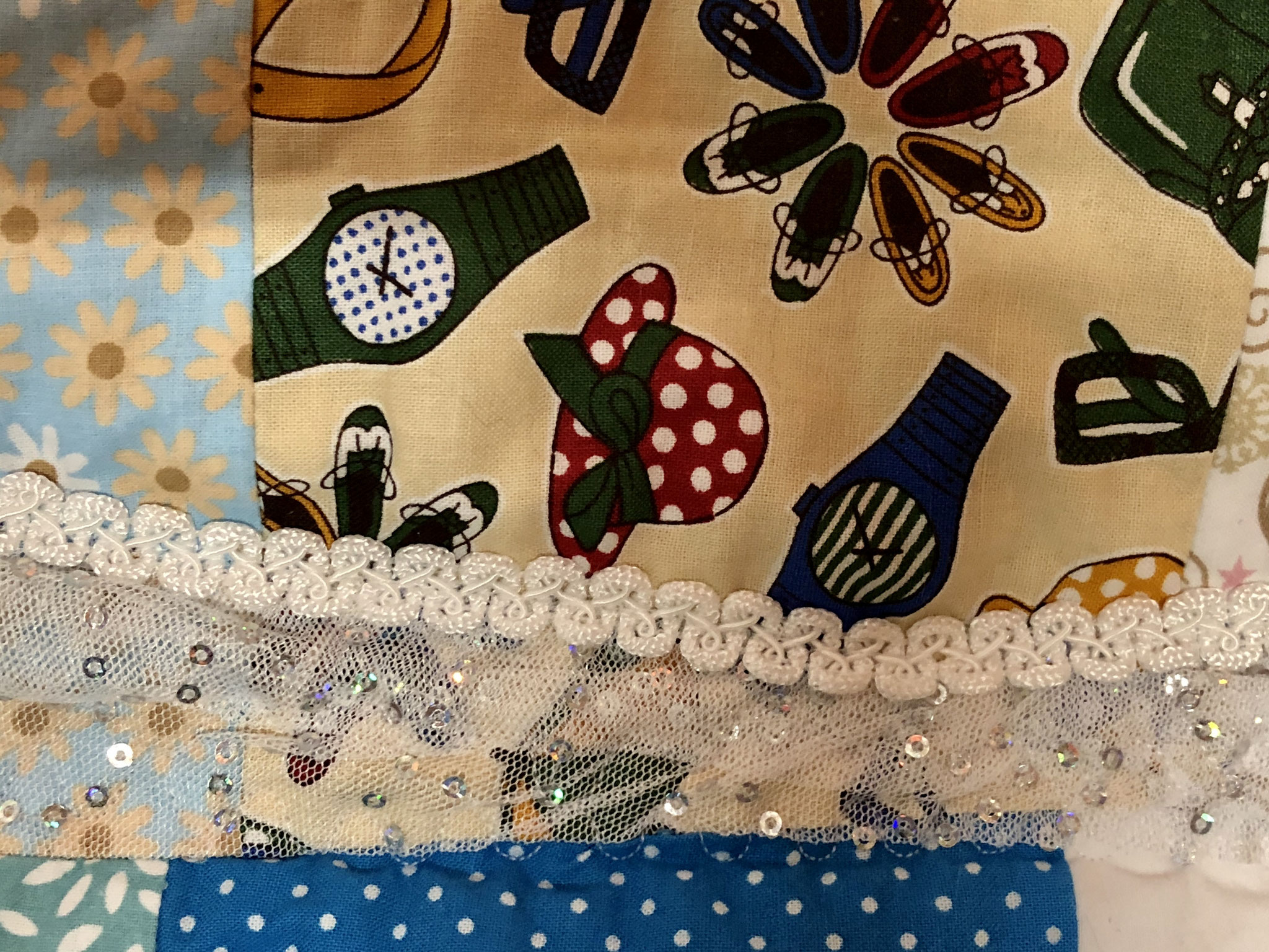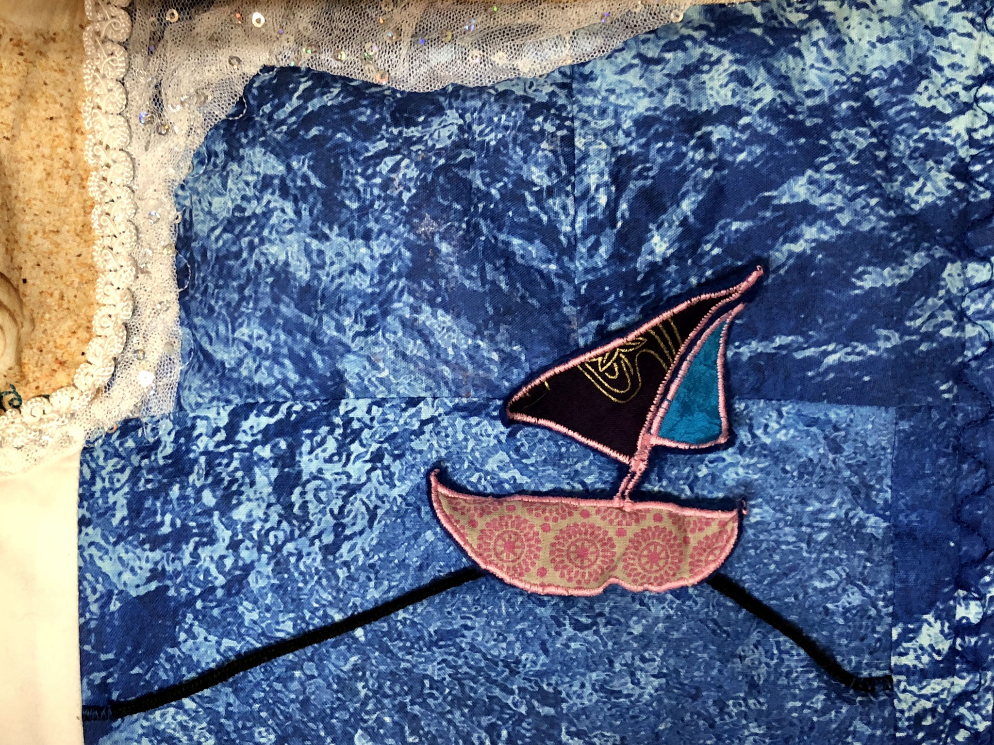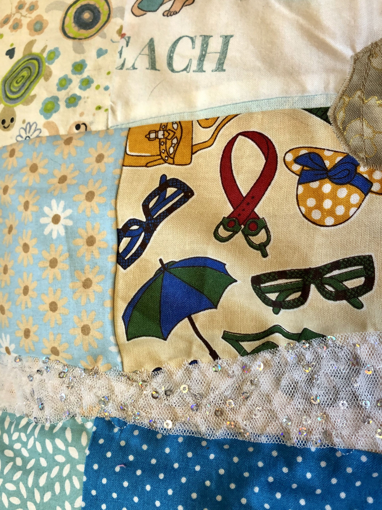 mitgeliefert. In der Vorderseite der Decke sind verschiedene Höhlen und Öffnungen eingearbeitet, wo man Fische und den Krebs verstecken kann. Die Höhle des Krebses ist mit einer Knisterfolie gefüttert, so dass sie knistert, wenn man sie drückt und berührt. Die Tentakel der Quallen sind fühl- und greifbar. Manche Stoffe glitzern, besonders wenn Licht oder die Sonne darauf scheint.
