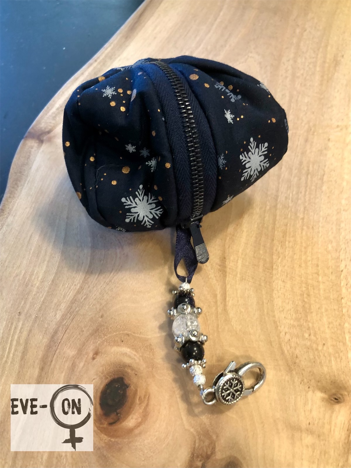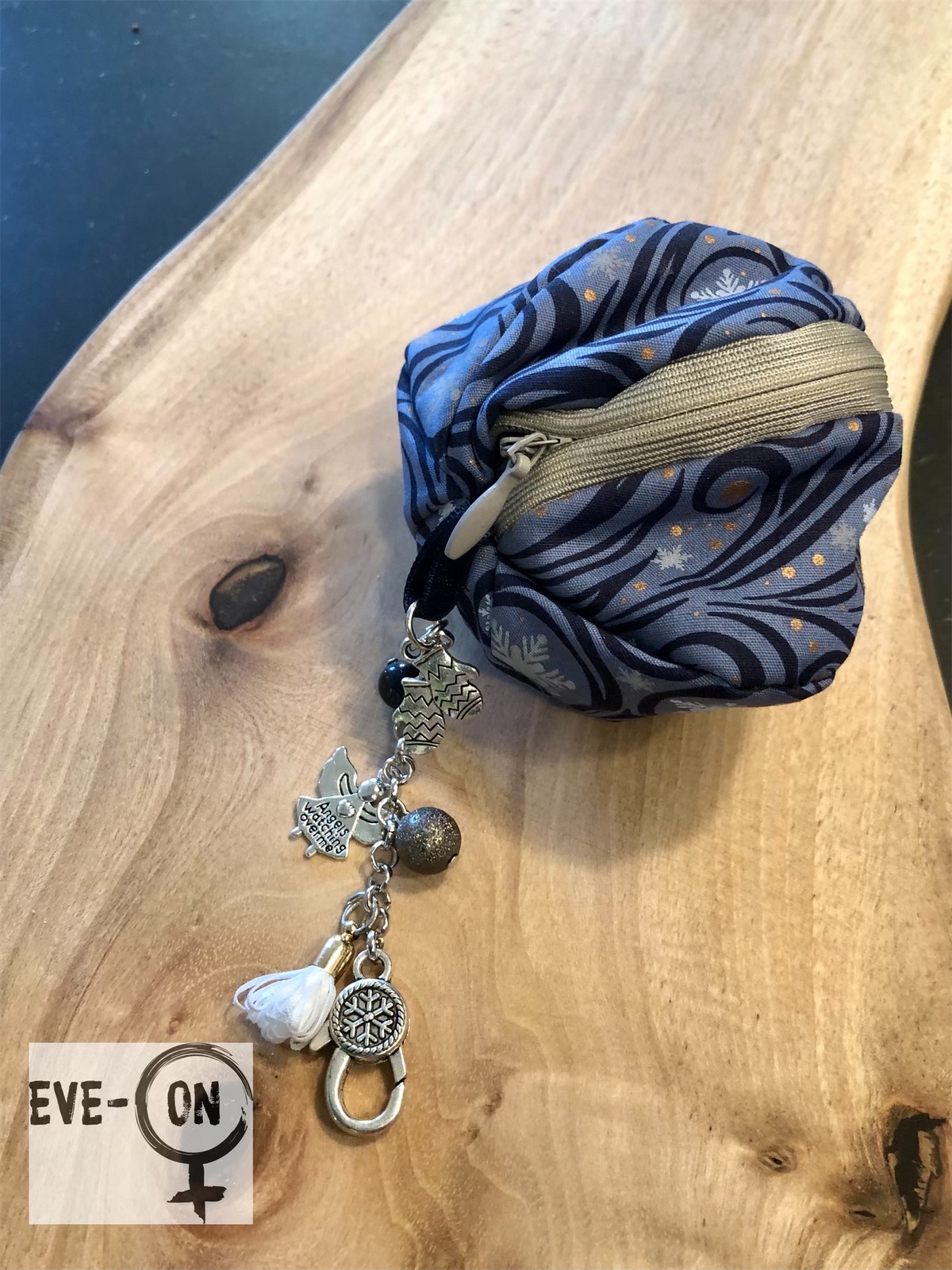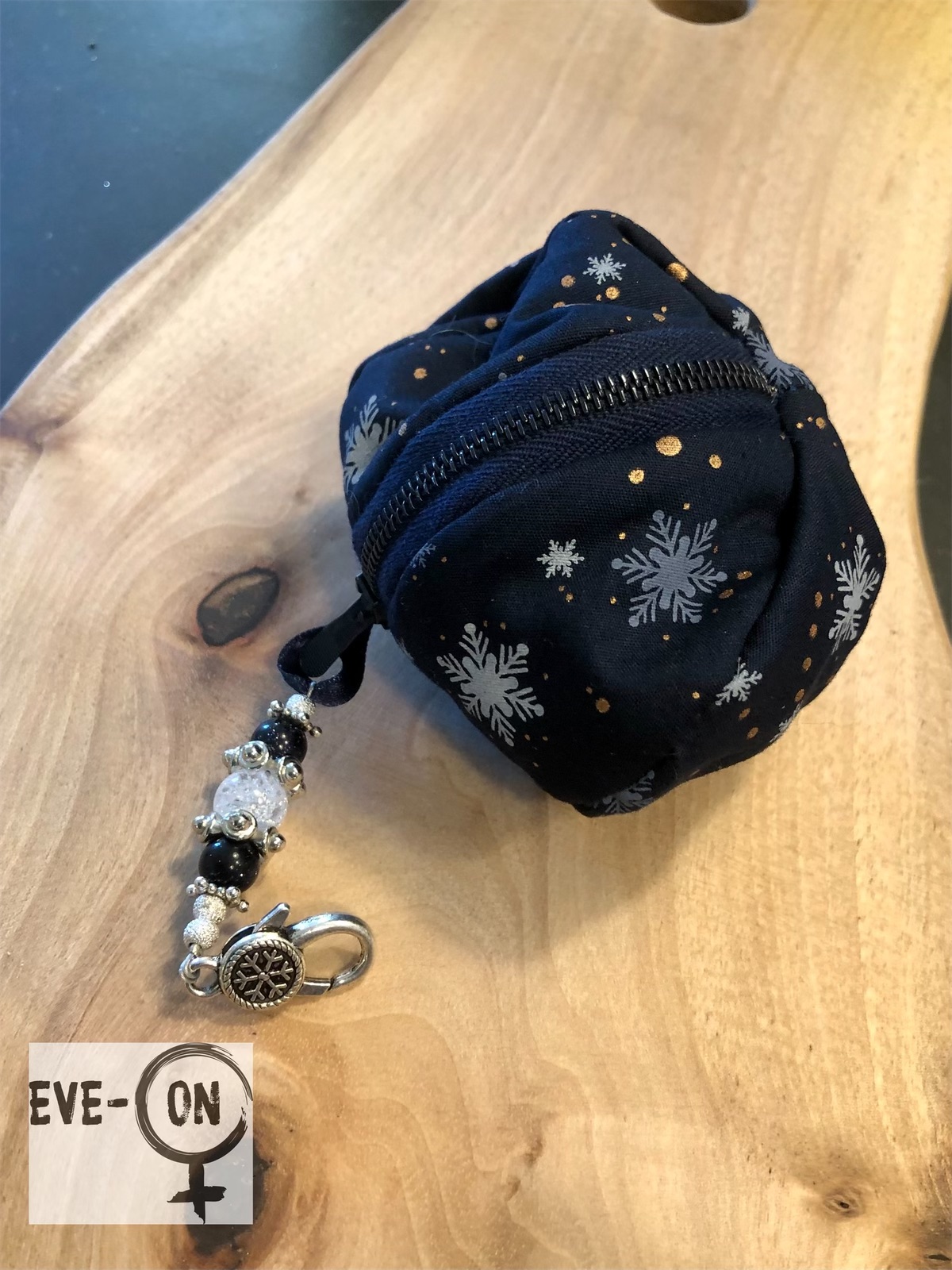 Kleines Mini-Täschchen, in dem man einen Glücksbringer, einen Wunsch, eine Affirmation, o.ä. verstauen und immer bei sich tragen kann. Mit dem Karabiner lässt sich der Ball in einer Handtasche, am Rucksack oder anderswo befestigen. Auch als Schlüsselanhänger geeignet.