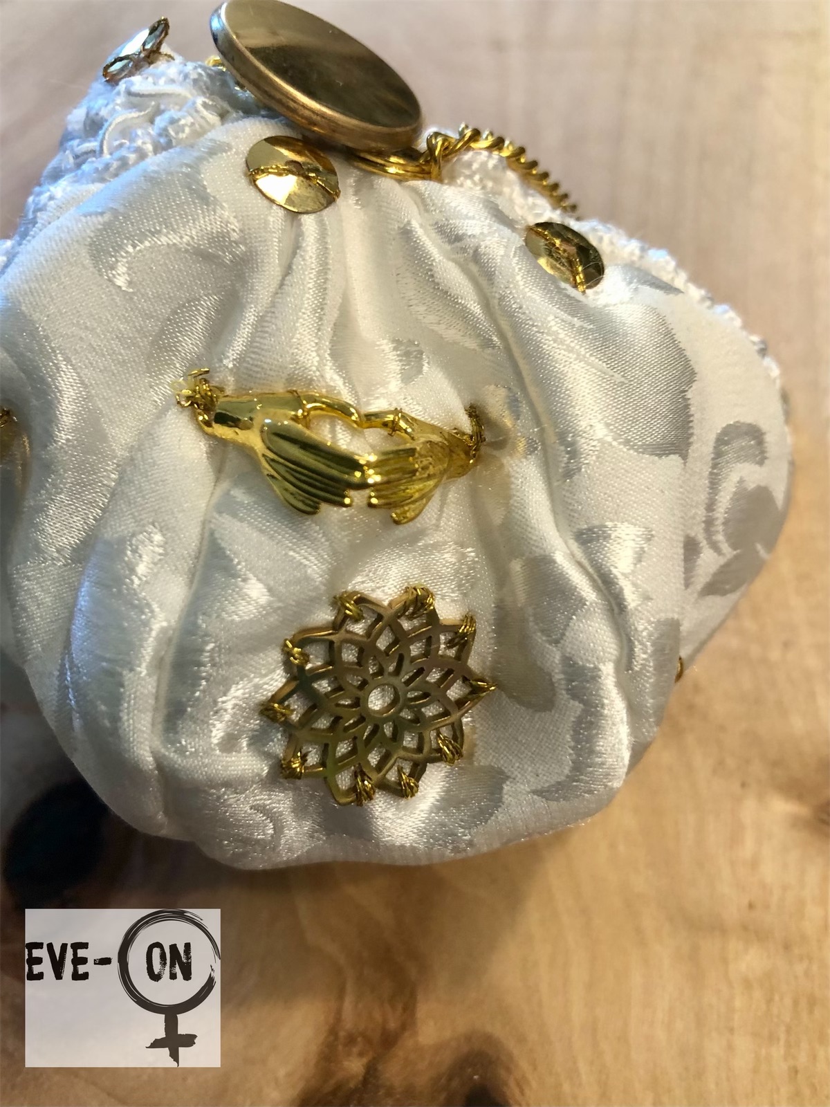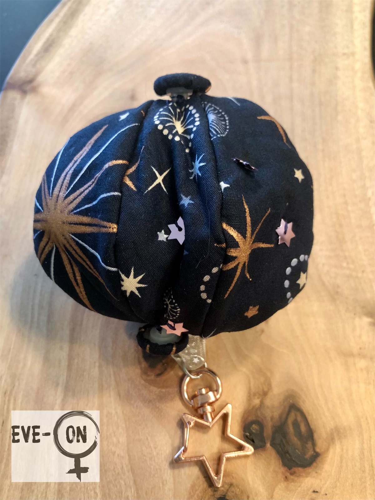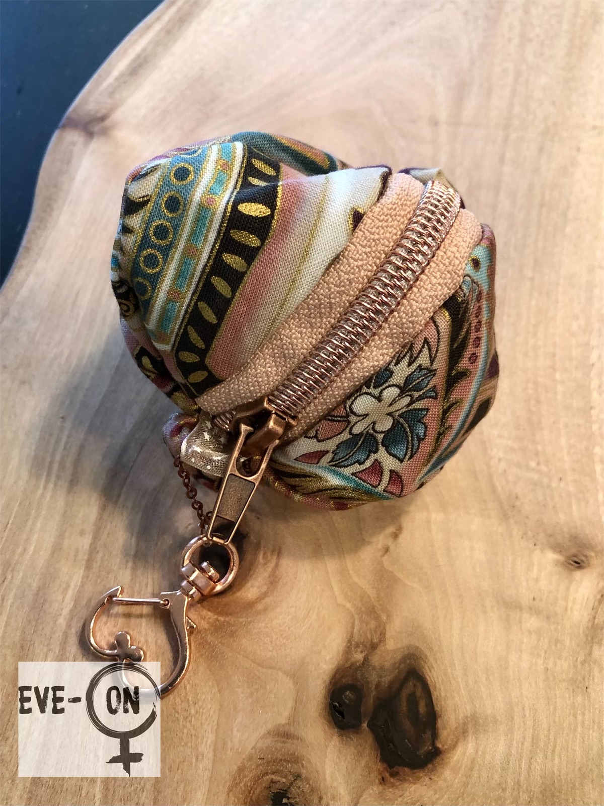 Kleines Mini-Täschchen, in dem man einen Glücksbringer, einen Wunsch, eine Affirmation, o.ä. verstauen und immer bei sich tragen kann. Mit dem Karabiner lässt sich der Ball in einer Handtasche, am Rucksack oder anderswo befestigen. Auch als Schlüsselanhänger geeignet.