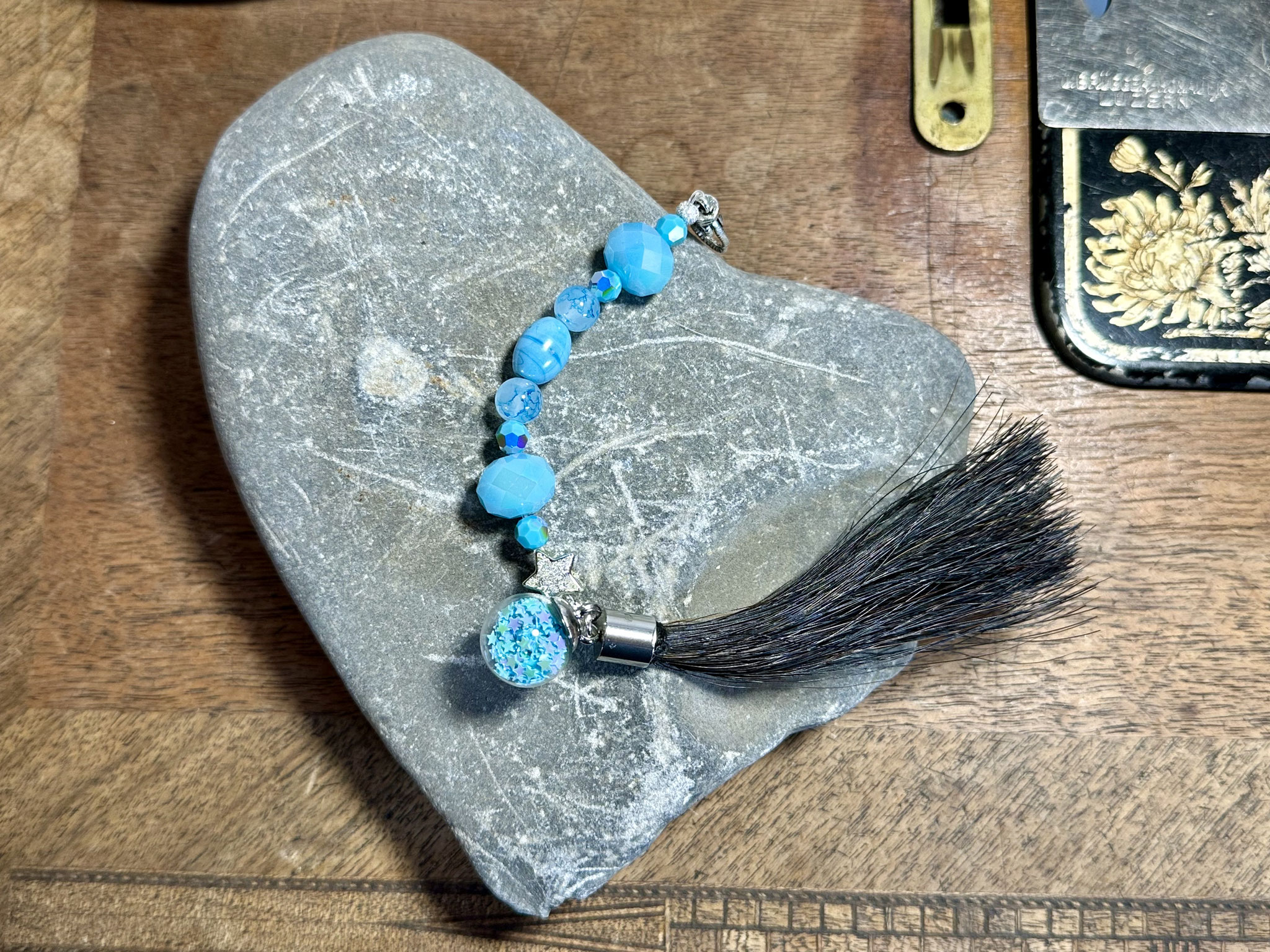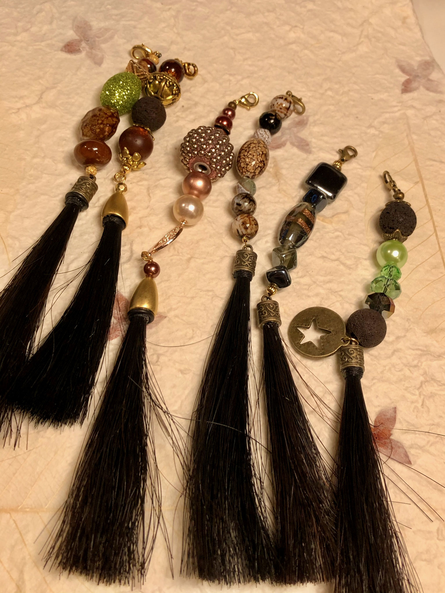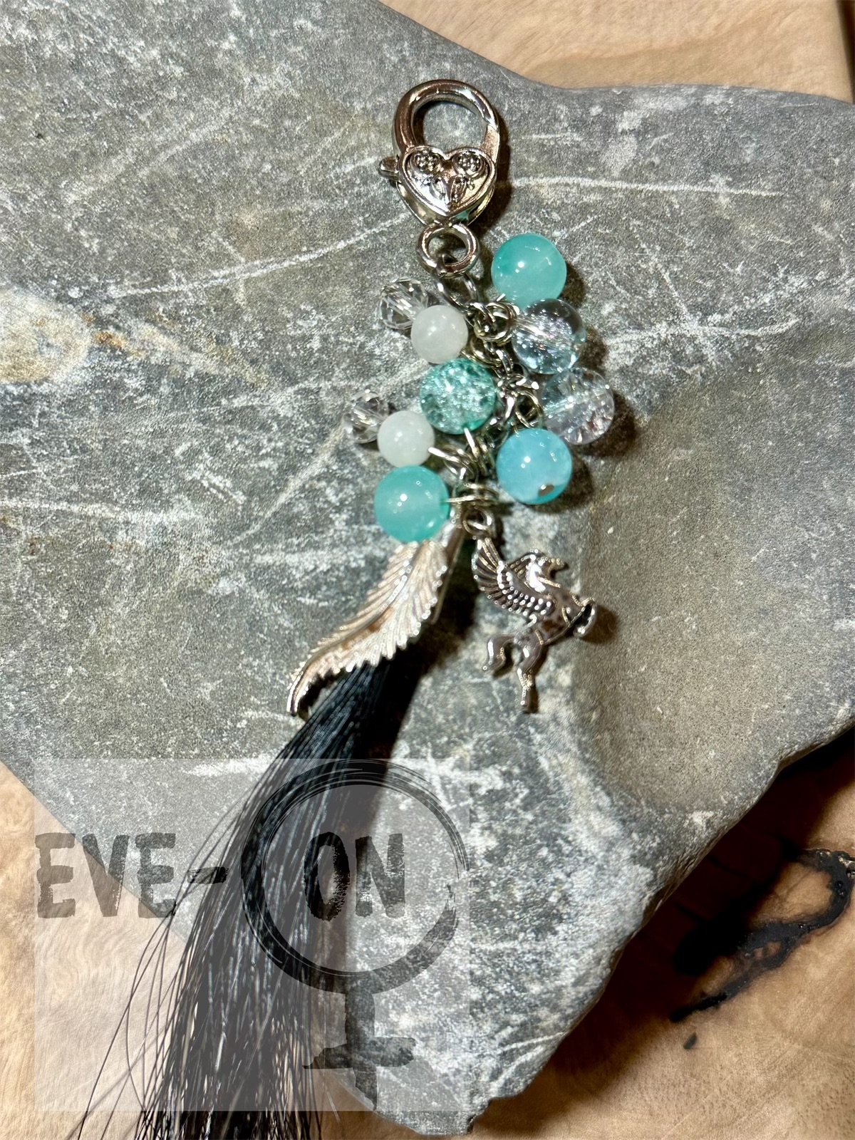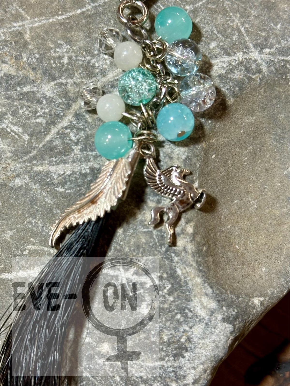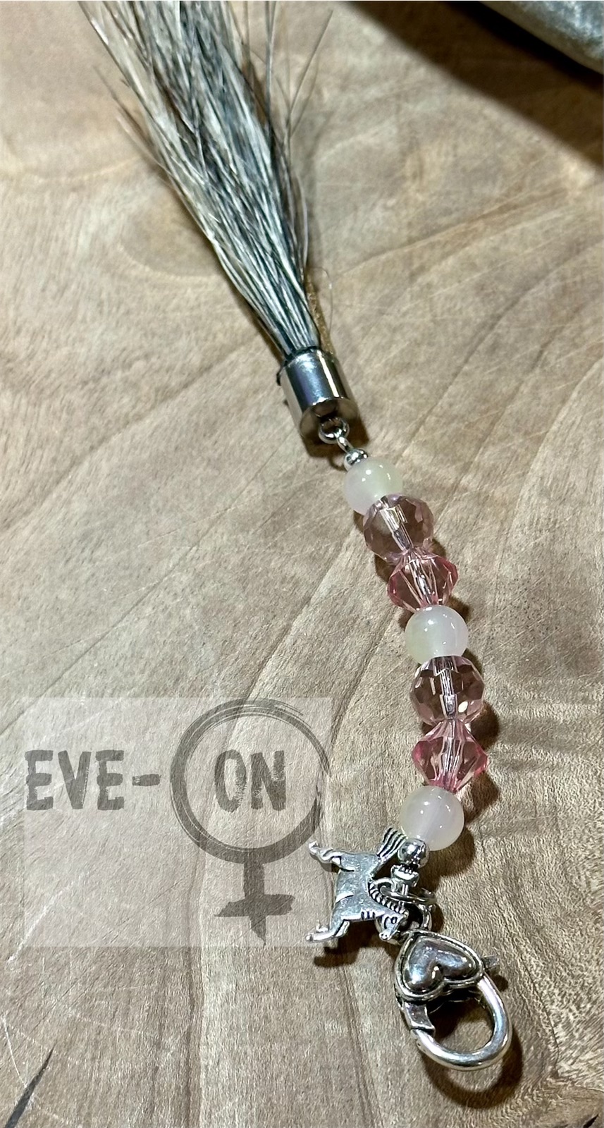 Jeder Anhänger ist ein Unikat und wird anhand von Ihren Farb- und Edelsteinwünschen hergestellt. Der Preis kann deshalb variieren. Sie senden mir die Haare Ihres Pferdes gewaschen zu, und ich stelle daraus einen Anhänger nach Ihren Wünschen her. Dies ist ein einmaliges und sehr exklusives Produkt, in Handarbeit liebevoll hergestellt. Bitte teilen Sie mir Ihre Wünsche in der Kommentarspalte mit. Danke.
