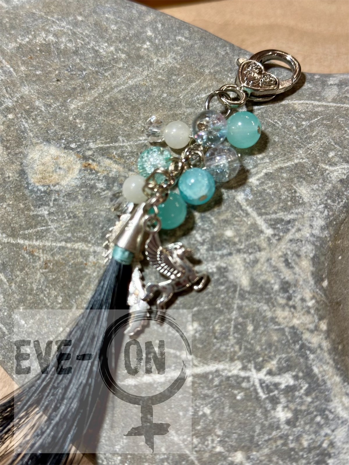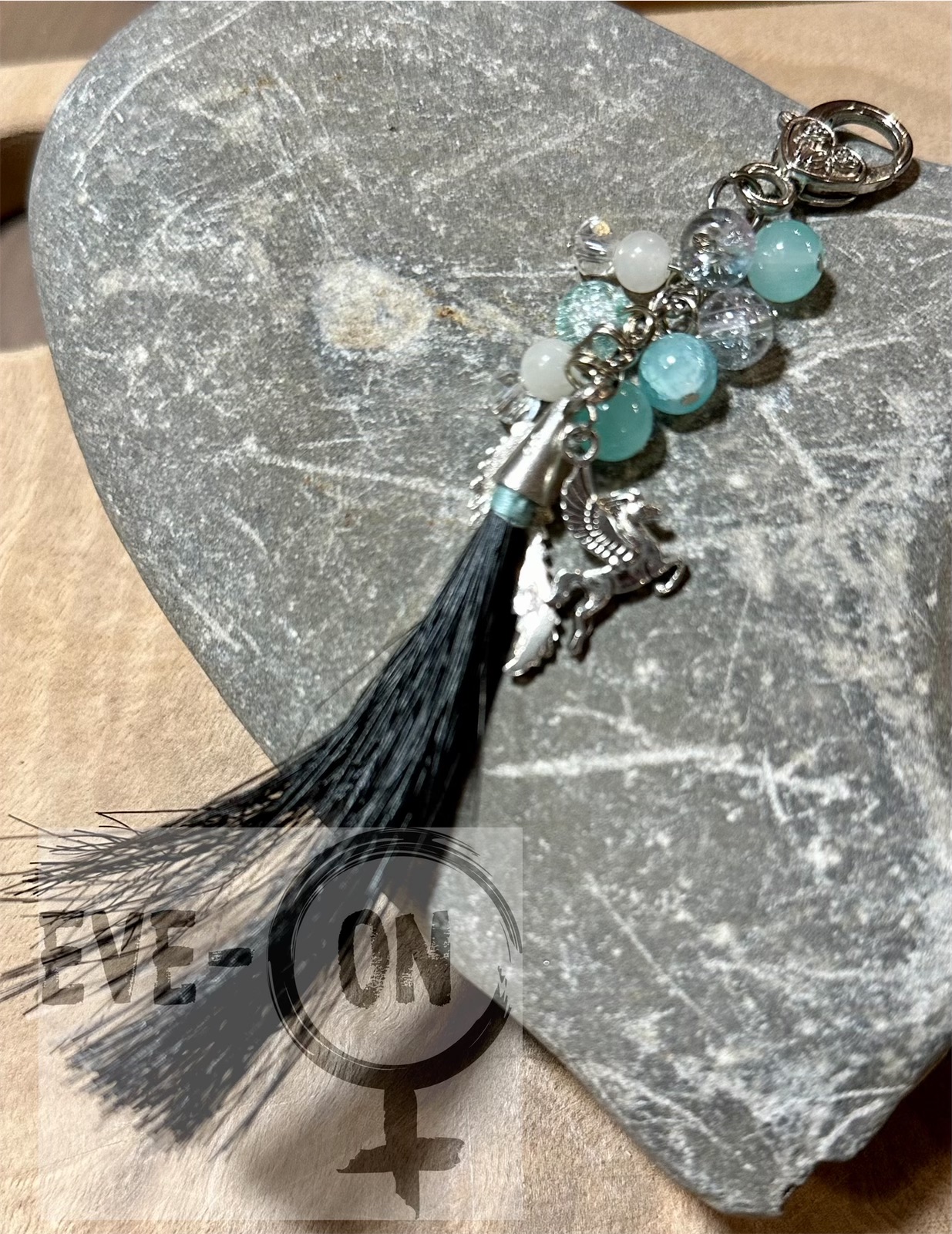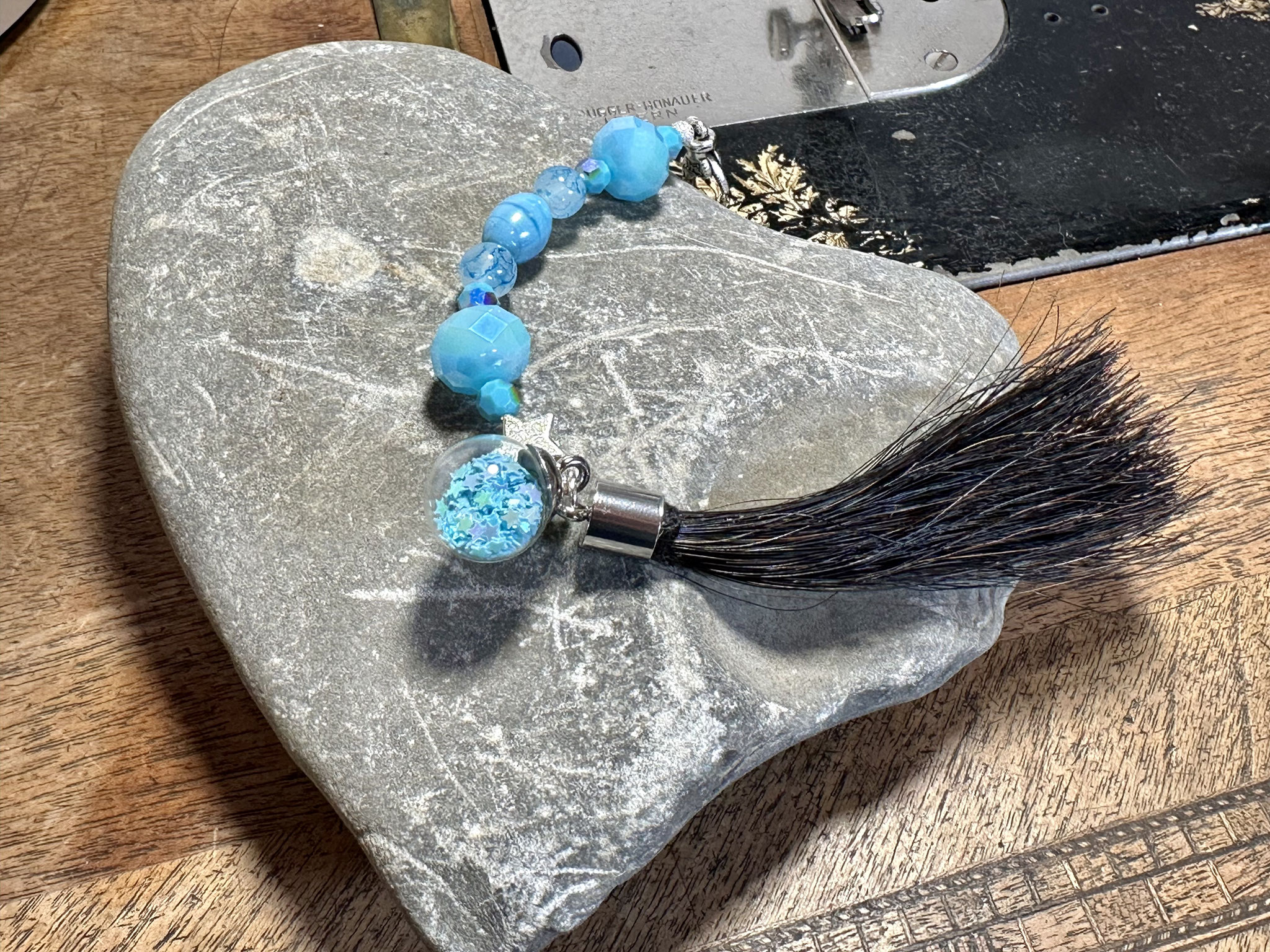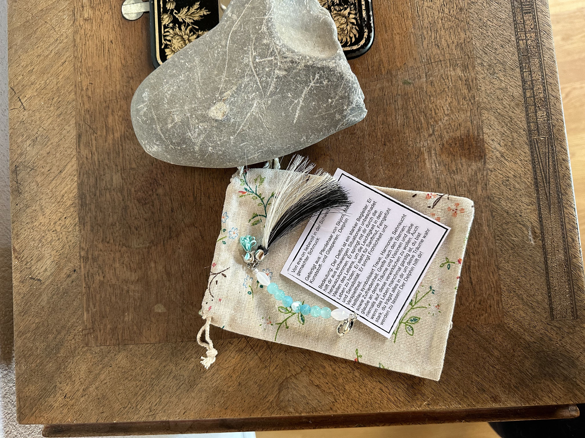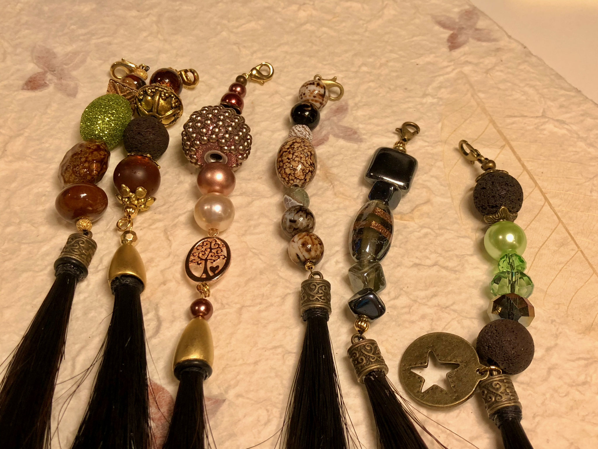 Jeder Anhänger ist ein Unikat und wird anhand von Ihren Farb- und Edelsteinwünschen hergestellt. Der Preis kann deshalb variieren. Sie senden mir die Haare Ihres Pferdes gewaschen zu, und ich stelle daraus einen Anhänger nach Ihren Wünschen her. Dies ist ein einmaliges und sehr exklusives Produkt, in Handarbeit liebevoll hergestellt. Bitte teilen Sie mir Ihre Wünsche in der Kommentarspalte mit. Danke.