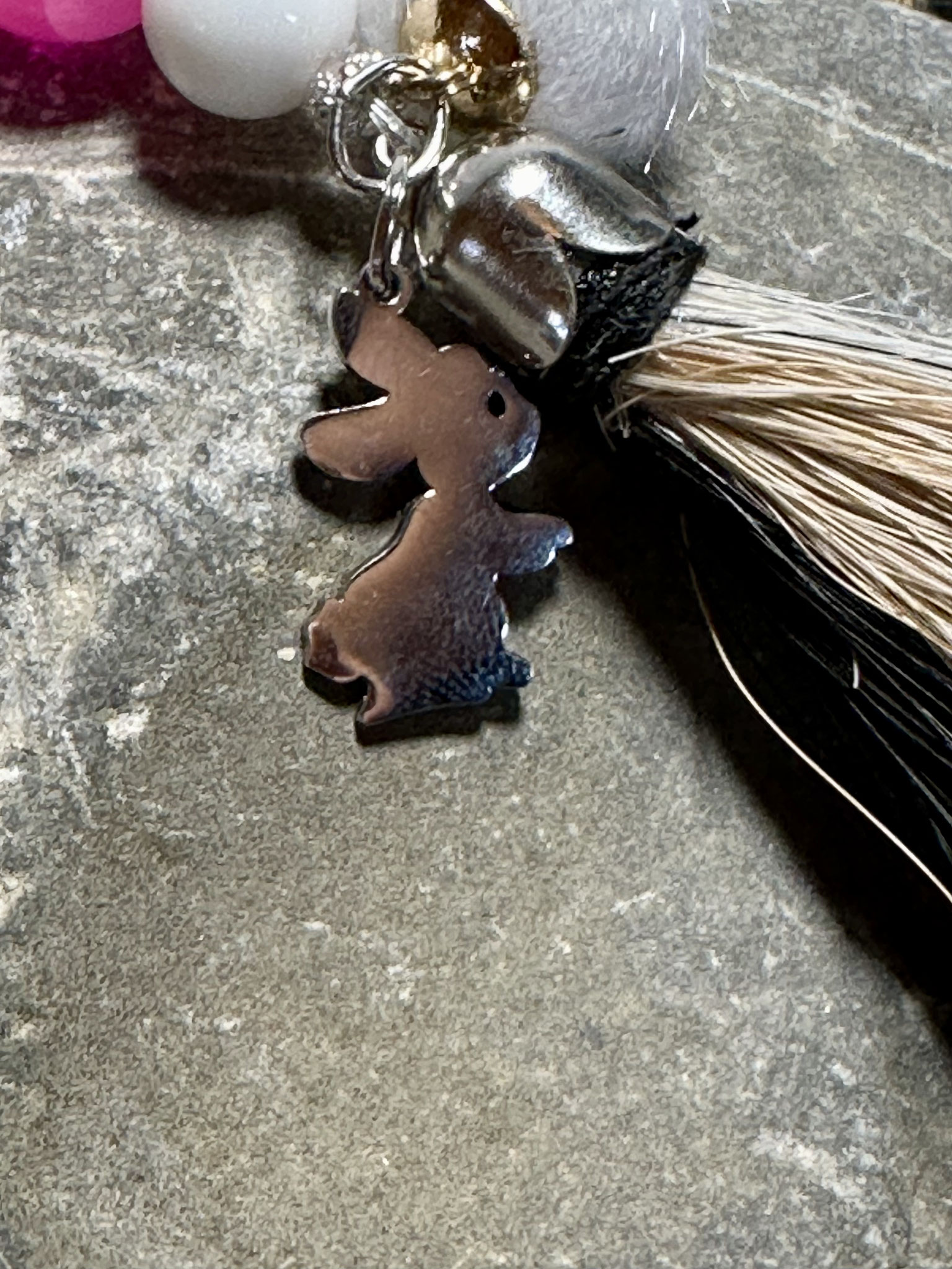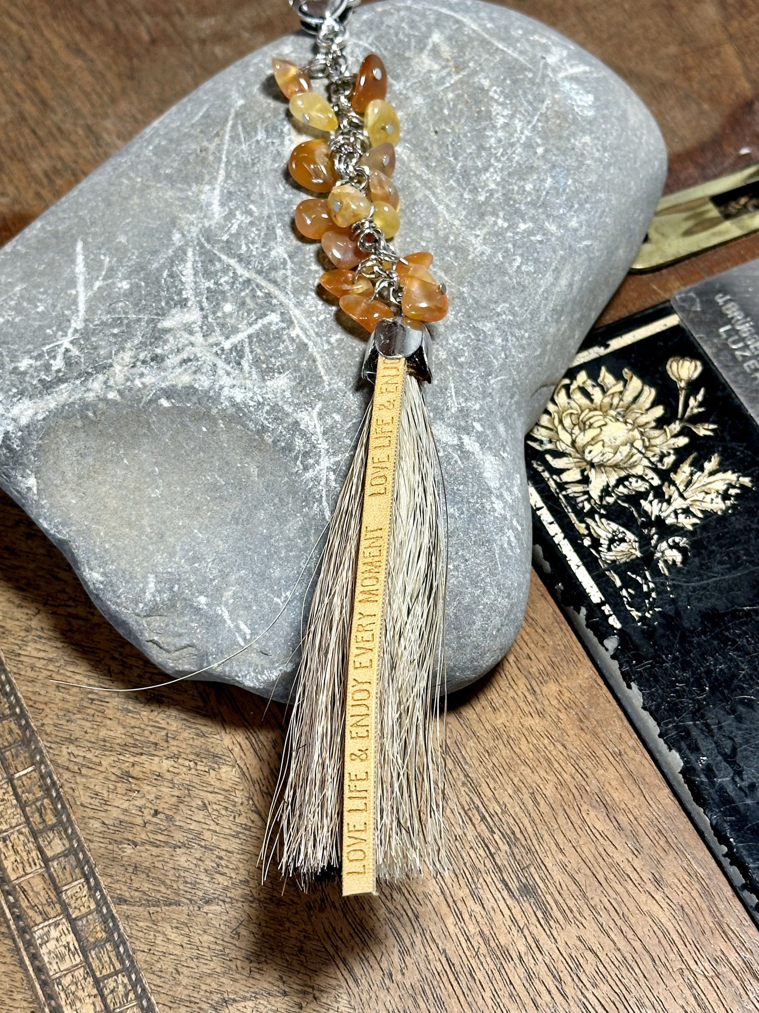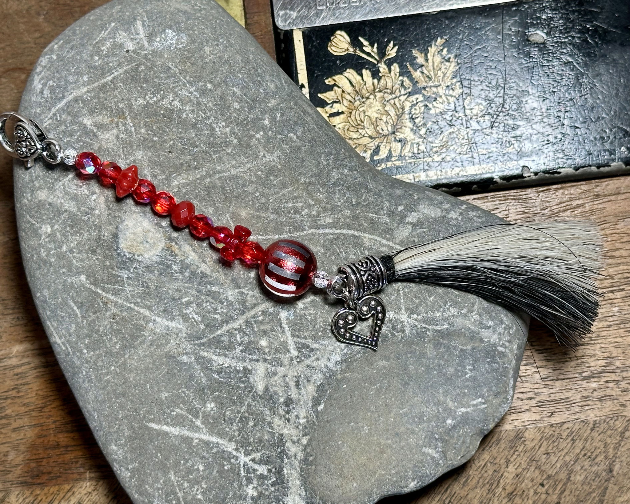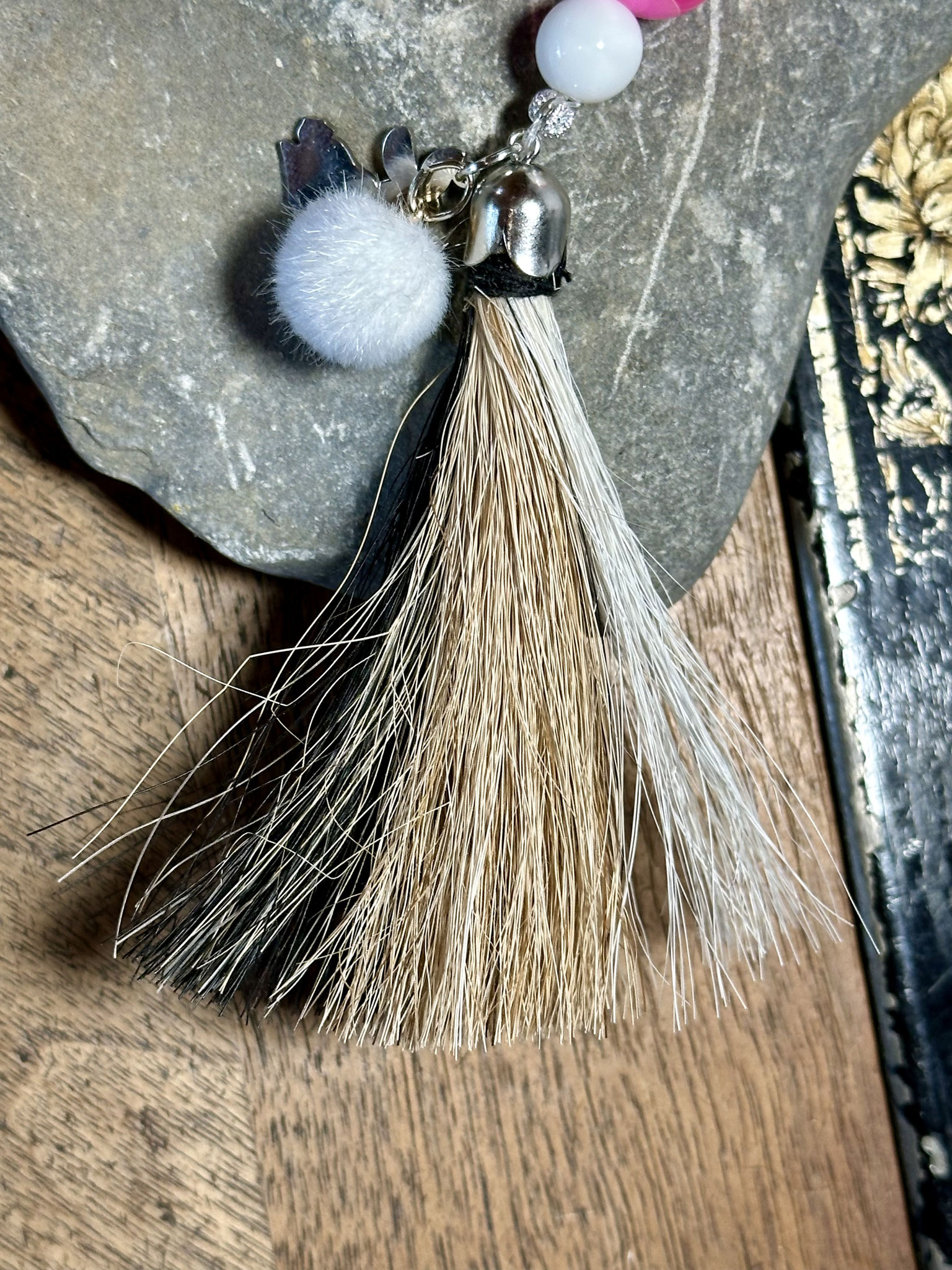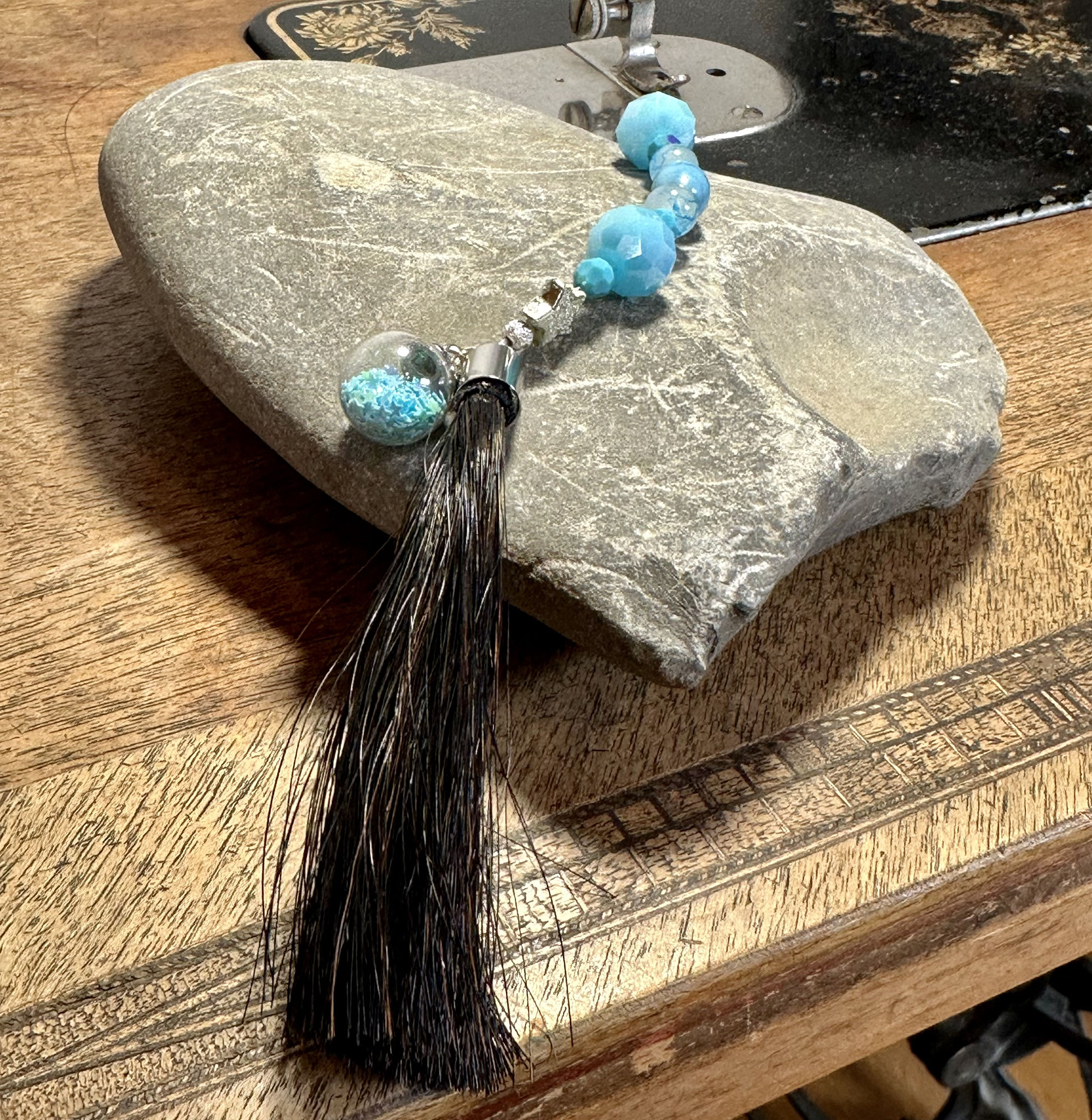 Jeder Anhänger ist ein Unikat und wird anhand von Ihren Farb- und Edelsteinwünschen hergestellt. Der Preis kann deshalb variieren. Sie senden mir die Haare Ihres Pferdes gewaschen zu, und ich stelle daraus einen Anhänger nach Ihren Wünschen her. Dies ist ein einmaliges und sehr exklusives Produkt, in Handarbeit liebevoll hergestellt. Bitte teilen Sie mir Ihre Wünsche in der Kommentarspalte mit. Danke.